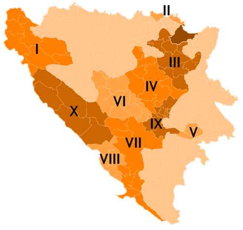 | 1. | Unsko-sanska | Bihać | 6. | Središnja Bosna | Travnik | ||