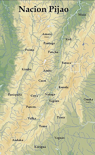 Pijao. – izumrlo indijansko pleme porodice Chibchan (ili Cariban) iz planinskih predjela južne Kolumbije. Po jeziku bili su srodni svojim južnim susjedima Páez. Pijao su bili agrikulturan narod, uzgajivači kukuruza, slatke manioke (neotrovna vrsta), graha, krumpira i različitog voća. Uz ovo treba spomenuti i to da su bili ljudožderi. Živjeli su po naseljima od nekoliko obitelji u kućama napravljenim od drveta i oblijepljene glinom. Pijao su se bavili i lončarstvom, tkali su pamuk, i bili su majstori u obradi kamena, bakra i zlata. Odijeća je ipak bila oskudna, sastojala se od šešira pletenih od palmina lišća i zlatnog i pernatog nakita, tijela su bojali. Deformacija lubanje također se vršila nad malenom djecom. Vjerovali su u idole i reinkarnaciju duše u neku životinju. –Nestali su sredinom 17. stoljeća. -Godine 1943 Alicia Dussán de Reichel i antropolog Gerardo Reichel-Dolmatoff otkrivaju 1943. da je jezik još očuvan u selima Ortega, Natagaima i Coyaima.