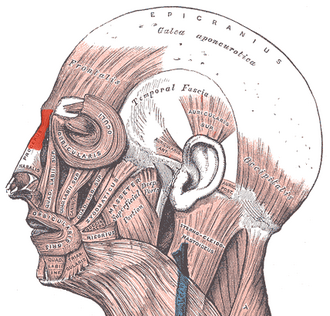 Mišić polazi tetivnim vlaknima sa fascije koja prekriva donji dio nosne kosti i gornji dio lateralne nosne hrskavice, ide prema gore i hvata se za kožu donjeg dijela čela, između obrva. Vlakna mišića križaju se s vlaknima čeonog mišića (lat. musculus frontalis).