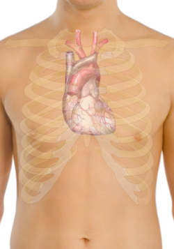 Čovječje srce je organ koji pruža neprekidnu cirkulaciju krvi tijekom srčanog ciklusa i jedan je od najvitalnijih organa u čovječjem tijelu.[1] Srce je podijeljeno na četiri glavne komore: gornje dvije komore zovu se lijevom i desnom pretklijetkom (atrijem), a donje dvije komore zovu se desnom i lijevom klijetkom (ventrikulom).[2] Debeo mišićni zid razdvaja desnu stranu srca od lijeve, a naziva se srčanom pregradom (septumom). Normalno sa svakim otkucajem desni ventrikul potiskuje jednaku količinu krvi u pluća kao što lijevi ventrikul potiskuje u tijelo. Liječnici obično za desni atrij i desni ventrikul rabe zajednički izraz desno srce, a za lijevi atrij i lijevi ventrikul lijevo srce.[3]