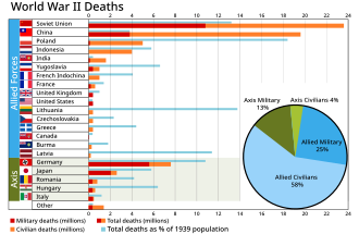 Točan broj ljudskih žrtava u ratu nepoznat je i do danas. Broj se procjenjuje na oko 55 milijuna ljudi, što je najveći broj do danas. Broj ranjenih bio je višestruko veći, što, s obzirom na tadašnji broj stanovnika planeta Zemlje, Drugi svjetski rat čini najkrvavijim sukobom u povijesti.