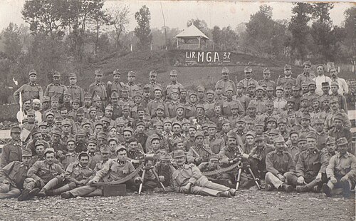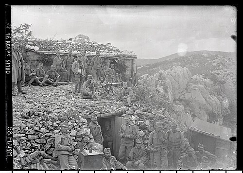 Domobrani 37. pukovnije na položajima, vrh brda Sabotin, Soča, 1916.[8]