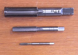 • prema dimenziji i vrsti navoja odabire se potrebno svrdlo koje buši okruglu rupu. Na primjer za M10 potrebna je rupa prema tablicama d = 8,376 mm i odabire se spiralno svrdlo d = 8,4 mm. Ako je potrebno, izvrši se predbušenje spiralnim svrdlom, na primjer d = 5 mm;