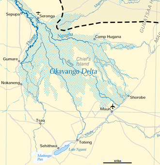 - ↑ Okavango Delta na službenim stranicama UNESCO-a (eng.) Posjećeno 1. kolovoza 2014.