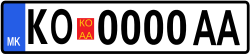 Automobilske registracijske oznake u Sjevernoj Makedoniji sastoje se od plave vrpce u lijevom dijelu ploče stoji međunarodni kod MK, pozivni broj s dva slova, pravokutni okvir u kojem upisane pozivni broj i dvosmislena alfa broj na ćirilici, četiri brojčanog koda i dvosmislenim alfa kod. (Npr.: SK █ 1234 AA).