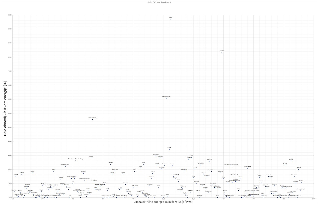 Dodatak:Udio OIE u električnoj energiji i cijena električne energije