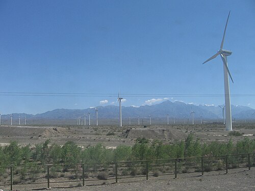 Gansu vjetroelektrana predlagana za zapadnu Gansu provinciju jedna je od šest nacionalnih mega-projekata odobrena od strane kineske vlade. Očekuje se porast do 20.000 MW do 2020., te se cijena procjenjuje na 120 bilijuna kineskih jena ($17.5 bilijuna dolara). U 2008., započeti su radovi na 750 kV AC strujovodima za prijenos struje iz vjetroelektrana.[14]