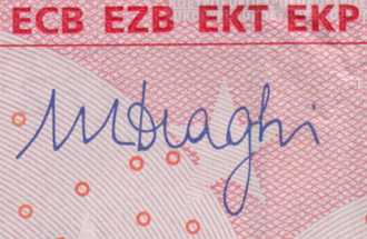Novčanice eura nose potpis predsjednika Europske središnje banke. [17]