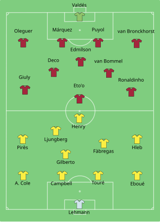 Obje momčadi su se izravno kvalificirale za UEFA Ligu prvaka 2005./06. Arsenal je bio dugi u FA Premier Ligi 2004./05., a Barcelona je bila prvak La Lige 2004./05.. U Ligi prvaka obje momčadi su bile pobjednici skupina[1], a u drugom dijelu natjecanja, odlučivalo se po pravilu gola u gostima, produžetcima i jedanaestercima.