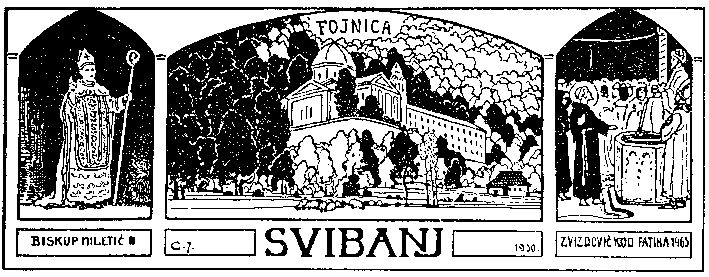 Prikaz fojničkog samostana, uz prizor biskupa Miletića i izdavanja "Ahd-name", povelje kojom je franjevcima zajamčena sloboda rada u svom carstvu i slobodan povratak izbjeglih franjevaca 1463. godine na Hrvatskom katoličkom kalendaru u Bosni i Hercegovini za mjesec svibanj, 1930. godina
