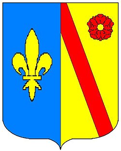 - (HR) III. Okomita podjela. Lijevo na plavom polju zlatni ljiljan, desno na zlatnom polju lijevo kosa crvena greda, iznad grede crveni cvijet (ruža). [1/50]