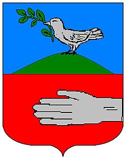 - (HR) III Vodoravna podjela. Gore na plavom polju srebrena golubica s zelenom grančicom u kljunu, golubica stoji na zelenom trobrijegu, dolje na crvenom polju srebreni dlan koji izlazi s desna. [1/53]