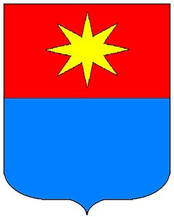 - (HR) Plavo polje podijeljeno zlatnim valom koji ima srebreni okvir, iznad vala dvije šesterokrake zlatne zvijezde 2, ispod vala jedna šesterokraka zlatna zvijezda. Kapa: na zlatnom polju crni orao (capo di Impero). [3]