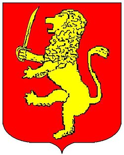 (HR) Na crvenom polju zlatni lav u šapi drži zlatnu sablju . [1/47, 4/9] |