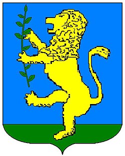 (HR) Na plavom polju zlatni lav drži zelenu granu (maslina), lav stoji na zelenom tlu. [1/31, 3] | |