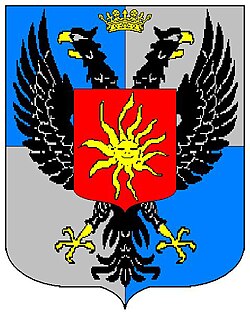 (HR) Podjela na četvrtine. 1 četvrtina na plavom polju zlatni orao, 2 i 3 četvrtina zlatno polje, 4 četvrtina plavo polje. [1/36] |
