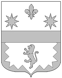 (HR) Na plavom polju srebrena ruka u srebrenom rukavu, izlazi s desna, drži zelenu stabljiku s korijenom i četiri zelena lista, na vrhu stabljike šestokraka zlatna zvijezda. [1/14, 4/5, 5/27] | |