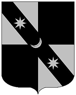 (HR) Crveno polje podijeljeno srebrenim valom, gore šestokraka srebrena zvijezda, dolje srebreni polumjesec. [1/49] | |