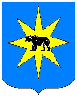 (HR) Na plavom polju osmero kraka zlatna zvijezda, unutar zvijezde hodajući crni medvjed. [1/47, 5/65, 6/23] |