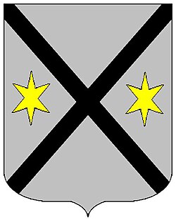 (HR) Na zlatnom polju dvije lijevo kose plave grede, duž svake grede po tri zlatna ljiljana. [1/53] (HR) Na zlatnom polju dvije lijevo kose plave grede, duž svake grede po tri srebrena ljiljana. [5] |