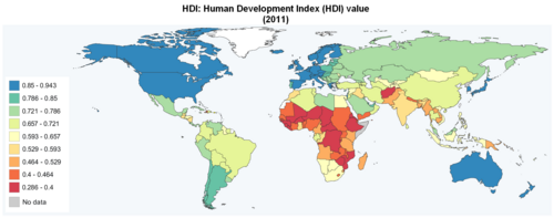 HDI ili Human Development Index (hrv. ljudski razvojni indeks) početkom devedesetih godina 20. stoljeća uveo ga je UN, a svakoj državi daje bodove u rasponu od 0,001 do 1,0 temeljene na očekivanoj životnoj dobi, obrazovanju i dohotku, a na temelju bodova rangiraju se države. Prema UN-u države sa HDI-om većim od 0,8 smatraju se razvijenima. Među prvih dvadeset država prema HDI-u nalaze se države Europske unije (osim Grčke, Španjolske, Portugala i 12 novih članica), članice EFTA-e (osim Lihtenštajna) i pet izvaneuropskih država: Kanada, SAD, Australija, Japan i Novi Zeland.