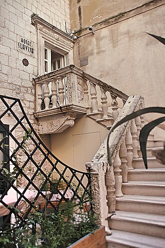Uz idealnu lokaciju u samom srcu grada Splita u neposrednoj blizini povijesnih znamenitosti Splita (katedrala sv. Duje, Jupiterov hram, palača Milesi), posebnost hotelu predstavljaju i sobe s malim renesansnim balkonima i prostranim terasama. Terasa na vrhu zgrade hotela pruža nezaboravan pogled na cijeli grad.