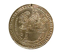 Jedan i po talir s likom Ludovika II. na kojem je latinski natpis: Ludovik, Božjom milošću Ugarske, Dalmacije, Hrvatske, itd. kralj.