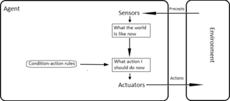 Jednostavni refleksivni agenti djeluju samo na temelju trenutne percepcije, ignorirajući ostatak perceptivne povijesti. Funkcija agenta je bazirana na pravilu stanje-akcija: ako se zadovoljava stanje (uvjet), tada slijedi akcija. Ta funkcija agenta uspijeva samo kada je okolina u potpunosti primjetljiva. Neki refleksivni agenti mogu sadržavati informacije o njihovom trenutačnom stanju što im omogućava zanemarivanje uvjeta čiji su pokretači već pokrenuti. Beskonačne petlje su često neizbježne za jednostavne refleksivne agente koji "rade" u djelomično primjetljivim okolinama.