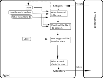 Agenti temeljeni na cilju samo znaju razliku između ciljnog stanja i ne-ciljnog stanja. Moguće je definirati mjeru kojom se mjeri poželjnost određenog stanja. Ta mjera se može dobiti kroz uporabu funkcije korisnosti. Općenite performanse mjere omogućuju usporedbu različitih stanja svjetova prema načinu da se mjeri usrećenost agenta. Zapravo, pojam "korisnost" opisuje koliko je "sretan" agent. Racionalan agent baziran na korisnosti odabire akciju koja maksimizira očekivanu korisnost ishoda akcije.
