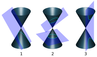 Geometrijski dokaz povezanosti presjeka stošca ravninom s kružnicom, elipsom, hiperbolom i parabolom izveo je francuski matematičar Dandelin sredinom 19. stoljeća. Dokaz se služi tzv. Dandelinovim kuglama.