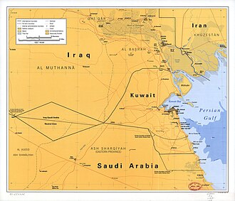 Povijesno, granice u ovom dijelu Arapskog poluotoka nisu bile jasno definirane. Početkom 20. stoljeća Osmansko carstvo nazdiralo je današnji Irak, a Kuvajt je bio britanski protektorat. U unutrašnjosti Arapskog poluotoka, slabo organizirane arapske grupacije povremeno su formirale emirate, od kojih je najistaknutiji bio emirat Nedžd i Hasa, pod vlašću obitelji al-Saud.[2] [3] Velika Britanija i Osmansko carstvo teoretski su, anglo-osmanskom konvencijom iz 1913., podijelili svoja područja utjecaja preko takozvanih "Plavih" i "Ljubičastih" linija. Time su Osmanlije priznale britansko pravo na Kuvajt, odijeljen od Osmanske Mezopotamije rijekom Wadi Al-Batin (tzv. "zelena linija", vidi kartu desno).[4] [5] [6]
