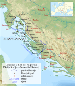 Provala Kelta na Balkanski poluotok koja se dogodila oko prve četvrtine 4. stoljeća pr. Kr., uzrokovala je mnoga pomicanja među tamošnjim narodima, pa i među Liburnima. Rimljani su s Liburnima te ostalim Ilirima, dolazili već rano u sukobe, i to osobito zbog gusarenja. Oni su svladali Histre i Liburne već 129. pr. Kr., tako da je 119. pr. Kr. rimska vojska nesmetano prolazila kroz njihova područja i morem i kopnom, ratujući protiv drugih ilirskih naroda. Kada je Ilirik 59. pr. Kr. ušao u prokonzularno područje Julija Cezara, Liburni su za ustanka Japoda i Delmata protiv rimske vlasti (52. pr. Kr.) ostali vjerni Rimljanima i namaknuli im pomoćne čete protiv ilirskih pobunjenika. Pošto je pobjednički završio građanski rat i ugušio republikanski pokret, Cezarov nasljednik Oktavijan je 35. pr. Kr. poveo akciju kako bi konačno pokorio buntovne Ilire, pa je u toj akciji razoružao i Liburne, zaplijenivši im njihove ratne brodove. Kada su Rimljani 9. pr. Kr. ugušili novi ilirski ustanak, ilirski su narodi bili pacificirani i tada je započelo njihovo romaniziranje koje je zahvatilo i Liburne. Rimljani su do tada jedinstvenu provinciju Ilirik podijelili u dvije: Panoniju i Dalmaciju, a u potonju je ušla i Liburnija, koja je zadržala svoje povijesne granice od Raše do Krke. Za Dioklecijanovih i Konstantinovih reformi od kraja 3. do prve polovice 4. stoljeća, jedan od triju administrativnih i sudbenih kotara na koje je bila podijeljena Dalmacija zvao se liburnijskim (conventus Liburnicus), a sjedište mu je bilo u Skradinu (Scardona). I u doba gotske vladavine u Dalmaciji (491. – 535.) još se spominje povijesno ime Liburnija. Poovicom 7. stoljeća navodi anonimni kozmograf iz Ravenne više mjesta u „hrvatskoj” Liburniji – Nin (Aenona), Karin (Corinium), Starigrad pod Velebitom (Argyruntum), Bag (Vegium), Stinica (Ortopula), Sveti Juraj (Lopsica), Senj (Senia), Crikvenica (Ad Turres), Lovran (Lauriana), Labin (Albona) i dr. – Po Liburnima je u antičko doba bio prozvan ratni brod na vesla (liburna). Materijalna kultura Liburna dobro je poznata iz istraženih naselja i nekropola u Ninu, Zadru, Vrsima i dr.[1]