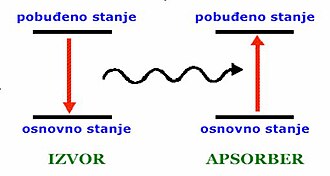 Prvo, vrijeme života pobuđenih atomskih nivoa je relativno kraće te je prirodna širina linija energijske raspodjele (Γ ≈ 10-5 eV) puno veća u usporedbi s nuklearnim nivoima (Γ ≈ 10-9 eV). Ove vrijednosti proizlaze iz Heisenbergovog principa neodređenosti prema kojemu je prirodna širina energijske linije povezana sa vremenom života τ nuklearnog stanja relacijom Γτ = h. Razlika još izraženija ako uzmemo u obzir omjer prirodne širine linije i njene energije (Γ/Egama ≈ 10-14 za nuklearne, a Γ/Eel ≈ 10-5 za elektronske prijelaze). Takva oštrina linija nuklearnih prijelaza ima utjecaj na slabije preklapanje pripadnih emisijskih i apsorpcijskih linija, što je preduvjet za rezonancijsku apsorpciju.