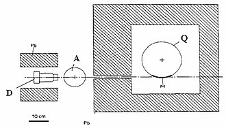 Budući se prema teoriji koju je Mössbauer postavio kod emisijskih i apsorpcijskih linija na vrijednostima energije koje odgovaraju energiji prijelaza nuklearnih nivoa trebaju javiti vrlo uske linije (prirodne širine), Mössbaueru je još bio potreban direktan eksperimentalni dokaz postojanja ovih linija. Njegova je ideja bila da iskoristi Dopplerov učinak ne kao sredstvo za nadoknađivanje energije uzmaka kao što ga je koristio Moon, nego kao sredstvo pomoću kojega će skenirati energijsko područje u okolini energije prijelaza. U tu je svrhu konstruirao uređaj prikazan na slici desno.