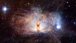 Maglica Plamen u središtu ima zvijezde stare oko 200.000 godina, dok su one na rubovima drevnije - one svemirom putuju već 1.5 milijuna godina.[1]