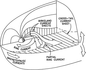 Magnetsko polje magnetosfere dolazi od Zemljinog magnetskog polja, ali i od električnih struja koje teku plazmom u magnetosferi – plazma djeluje kao elektromagnet. Magnetsko polje koje kruži oko te plazme, može izdužiti Zemljino magnetsko polje, puno dalje u svemir, nego što je predviđeno.