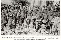 - ↑ Bulgarians (described in encyclopaedia as "Slavs, the bulk of which is regarded by almost all independent sources as Bulgarians"): 1,150,000, whereof, 1,000,000 Orthodox and 150,000 Muslims (the so-called Pomaks); Turks: c. 500,000 (Muslims); Greeks: c. 250,000, whereof c. 240,000 Orthodox and 14,000 Muslims; Albanians: c. 120,000, whereof 10,000 Orthodox and 110,000 Muslims; Vlachs: c. 90,000 Orthodox and 3,000 Muslims; Jews: c. 75,000; Roma: c. 50,000, whereof 35,000 Orthodox and 15,000 Muslims; In total 1,300,000 Christians (almost exclusively Orthodox), 800,000 Muslims, 75,000 Jews, a total population of c. 2,200,000 for the whole of Macedonia.