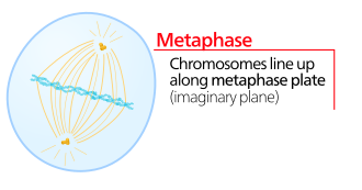 U metafazi kromosomi koji su u prometafazi bili porazbacani po stanici, poslažu se kružno po metafaznoj, ekvatorijalnoj ravnini u središtu stanice[2][1] u sredinu diobenog vretena. Kromosomski kraci u metafazi obično su savijeni.[1] Smjer u kojem se pružaju kromosomi okomit je na smjer kojim se pružaju mikrotubuli diobenog vretena.[1]