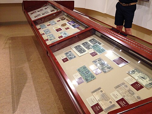 - Kamernog djela s brojnim fotografijama, kovanicama, papirnom monetom, čekovima, vrijednosnim papirima, mehaničkim bankarskim strojevima, knjigovodstvenim kljigama, propagandnim materijalom itd.