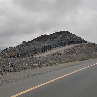 UAE su 2002. objavili da postavljaju ogradu duž granice s Omanom (osim u području enklave Madha-Nahwa)[9] u nastojanju da obuzdaju protok ilegalnih migranata, droga[10] i terorista u zemlju.[11] Izgrađena barijera je granična ograda od bodljikave žice visine 4 metra.[12]