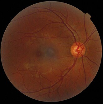 Optički disk je smješten 3 do 4 mm nazalno od fovee. Ovalan je u okomitom smjeru, prosječne veličine 1.76 mm u vodoravnom smjeru i 1.92 u vertikalnom. U središtu ima malo uleknuće koje varira u veličini, zvano fiziološka ekskavacija.