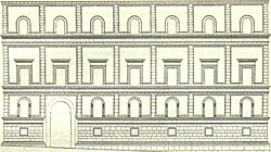 Osnova konstrukcije je gruba piperno stijena. Piano nobile ima najveće prozore, dok treći kat ima lučne prozore.[1] U 1700-ima je dodan četvrti kat.