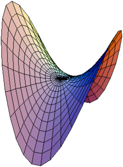 Hiperbolički paraboloid (ne treba ga miješati s hiperboloidom) ima dvostruku zakrivljenu plohu, oblika kao sedlo. U pravokutnom koordinatnom sustavu s tri osi x, y i z, hiperbolički paraboloid se može opisati kao: