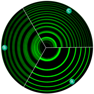 Mjesto jedne spektralne linije imamo tri. Jedna linija, Δm = 0, leži na mjestu prvobitne linije, druge dvije su za e∙H/4∙π∙me∙c pomaknute nalijevo ili nadesno, već prema tome da li je Δm = - 1 ili Δm = + 1. Te tri linije našao je P. Zeeman 1896. Pojava triju linija mjesto jedne u magnetskom polju zove se normalnim Zeemanovim učinkom ili efektom. Zeemanov učinak očito pokazuje diskretnost u orijentacijama magnetskih momenata.
