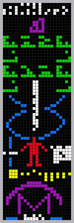 Zemlja je treći planet od Sunca te je njezin prikaz pomaknut u red iznad da bi se identificirala kao planet s kojeg je poruka poslana. Također, ljudski je lik prikazan kako "stoji" na Zemlji.