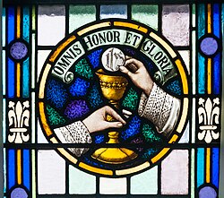 Simbolički prikaz vitica vinove loze, grožđa i vina kao utjelovljenja Presvete Krvi Kristove u euharistijskom sakramentu javlja se u apsidama i mozaicima ranokršćanskih crkava V. i VI. stoljeća, od Ravenne i Akvileje preko Eufrazijeve bazilike u Poreču i bazilikama hrvatske obale jadrana do Nikopolisa, Lezbosa i Jordana.[3] Jednako tako čest je motiv i u ikonografija, na vitrajima i oltarnim slikama.