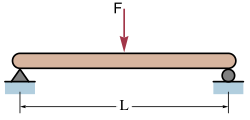 Elastični progib δC (u mm) u sredini jednostavne grede (točka C), koja je opterećena silom F u središtu, a nalazi se na 2 jednostavna oslonca, dat je izrazom: