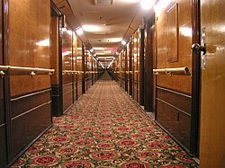 Oprema interijera varirala je u skladu s klasom, s putnicima prve klase koji su raspolagali s većinom prostora i luksuza. Ostale značajke na raspolaganju putnicima bile su zatvoreni bazen, salon, brodska biblioteka, dječji vrtić i otvoreni teniski teren. Najveća prostorija bila je blagovaona prve klase (grand salon), koja se sa širokim stupovima uzdizala tri kata u visinu. Zatvoreni bazen također je obuhvaćao dva kata.