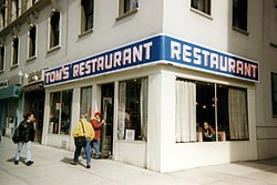 Jerry i njegovi prijatelji svakodnevno doručkuju u obližnjoj zalogajnici "Monk's Cafe". Za vanjske kadrove tog lokala poslužio je "Tom's Restaurant" u New Yorku, koji je nakon toga postao vrlo popularan.