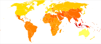 Shizofrenija pogađa oko 0.3–0.7% ljudi tijekom života,[3] ili 24 milijuna ljudi u svijetu u 2011. godini.[110] Pojavljuje se 1,4 puta češće u muškaraca u odnosu na žene i uglavnom se u muškaraca javlja u ranijoj dobi.[4] Pojava simptoma je oko 20-28 godine života u muškaraca i 26-32 godine života u žena.[111] Shizofrenija u pedijatrijskoj dobi je vrlo rijetka,[112] kao i pojava bolesti u srednjim i kasnim godinama života.[113] Iako je poznato da su stope shizofrenije vrlo slične u cijelom svijetu, prevalencija se ipak razlikuje od države do države,[114] unutar samih država,[115] i na lokalnom i na nivou naselja.[116]